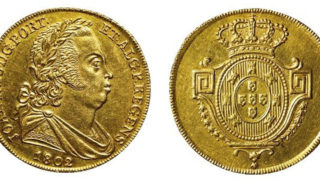 その他ジョアン6世 6400レイス金貨 (ポルトガル:Fr122、KM332:1802年) ポルトガルで1802年に発行された6400レイス金貨です。 当時はフランスの英雄ナポレオン・ボナパルトがヨーロッパを席巻しており、ポルトガルの栄華が終わる時期の金貨になります。 額面の6400レイス=4エスクード=1PECAは当... 2020.11.23その他