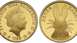 イギリスコインピーターラビット1/4オンス金貨(イギリス) 2016年に発売されたピーターラビットの1/4オンス金貨です。 ピーターラビット、かわいいですよね! デザイン自体はシンプルですが、シンプルゆえにキャラクターが映えるためお気に入り金貨の一つです。 2020.11.08イギリスコイン
