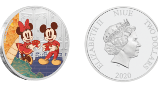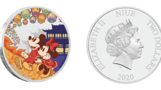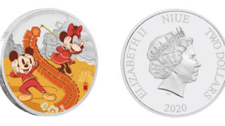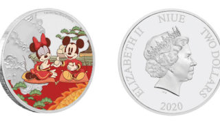 ニウエコインディズニー:子年「喜」 2ドル銀貨(ニウエ) 今回はニウエから2020年に発売されたディズニーの記念銀貨です。 直径が5cmあり、色も入っているため、ひときわ存在感を放つ銀貨になっています。 2021.01.03ニウエコイン